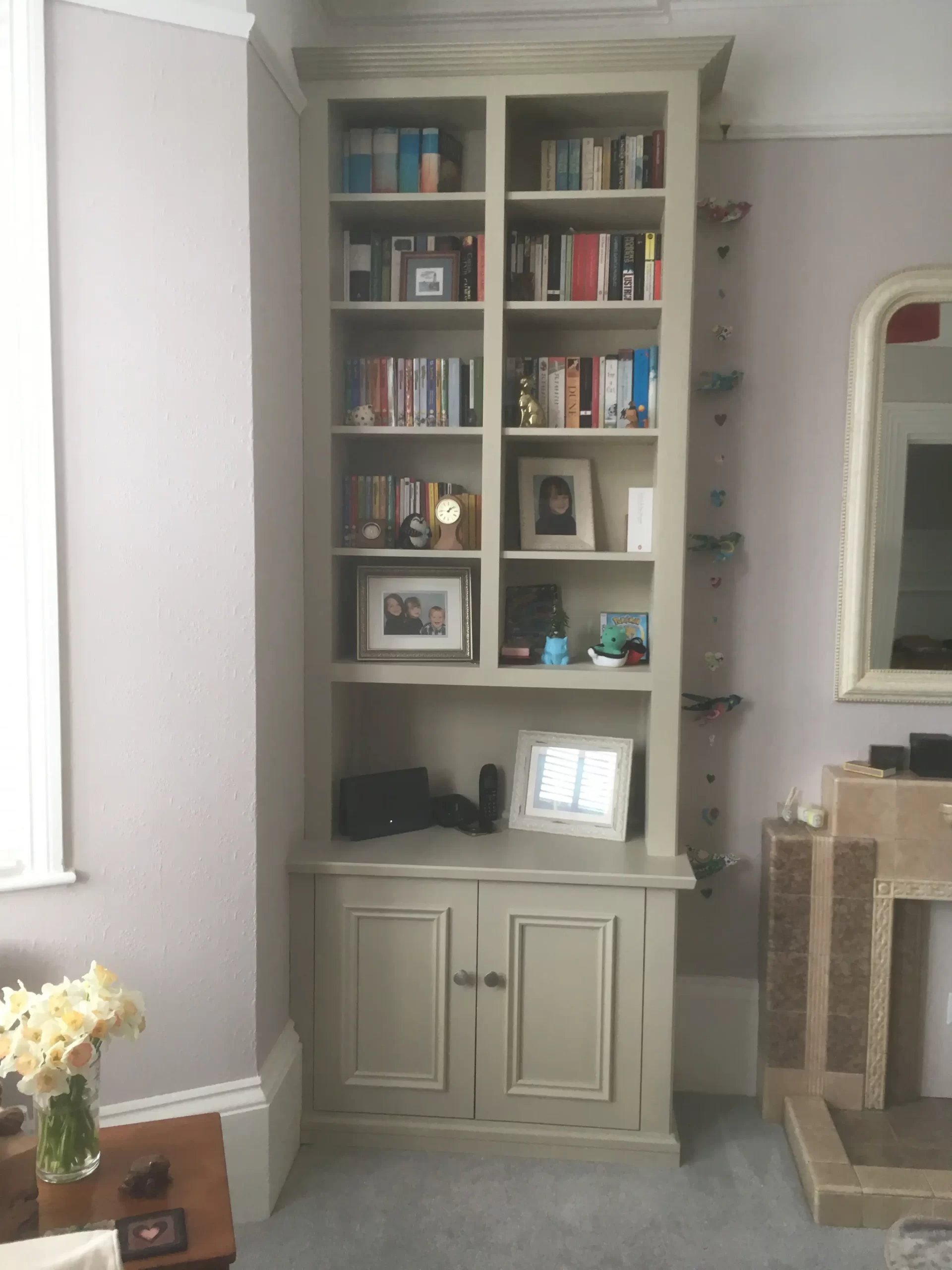 Bespoke floor to ceiling alcove cabinets with built in book shelves.